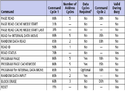 所有 NANDflash 操作开始时,都提供一个指令周期 ( 表 1) 。
