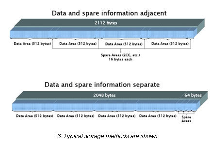 选择内置 NAND 接口的处理器或控制器的好处很多。如果没有这个选择,有可能在 NAND 和几乎任何处理器之间设计一个 “ 无粘接逻辑 (glueless)” 接口。 NAND 和 NOR 闪存的主要区别是复用地址和数据总线。该总线被用于指定指令、地址或数据。 CLE 信号指定指令周期,而 ALE 信号指定地址周期。利用这两个控制信号,有可能选择指令、地址或数据周期。把 ALE 连接到处理器的第五地址位,而把 CLE 连接到处理器的第四地址位,就能简单地通过改变处理器输出的地址,任意选择指令、地址或数据。这容许 CLE 和 ALE 在合适的时间自动设置为低。