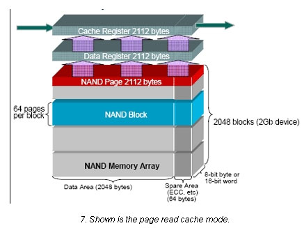 以 2Gb NAND 器件的寻址方案为例,第一和第二地址周期指定列地址,该列地址指定页内的起始字节 ( 表 2) 。